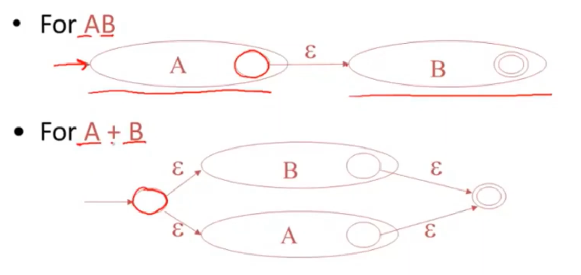 - 一个自动机接受0/1 ,然后整合进一个自动机 既接受1又接受0,通过空跳回到这个组合自动机的最终状态。然后进行迭代。