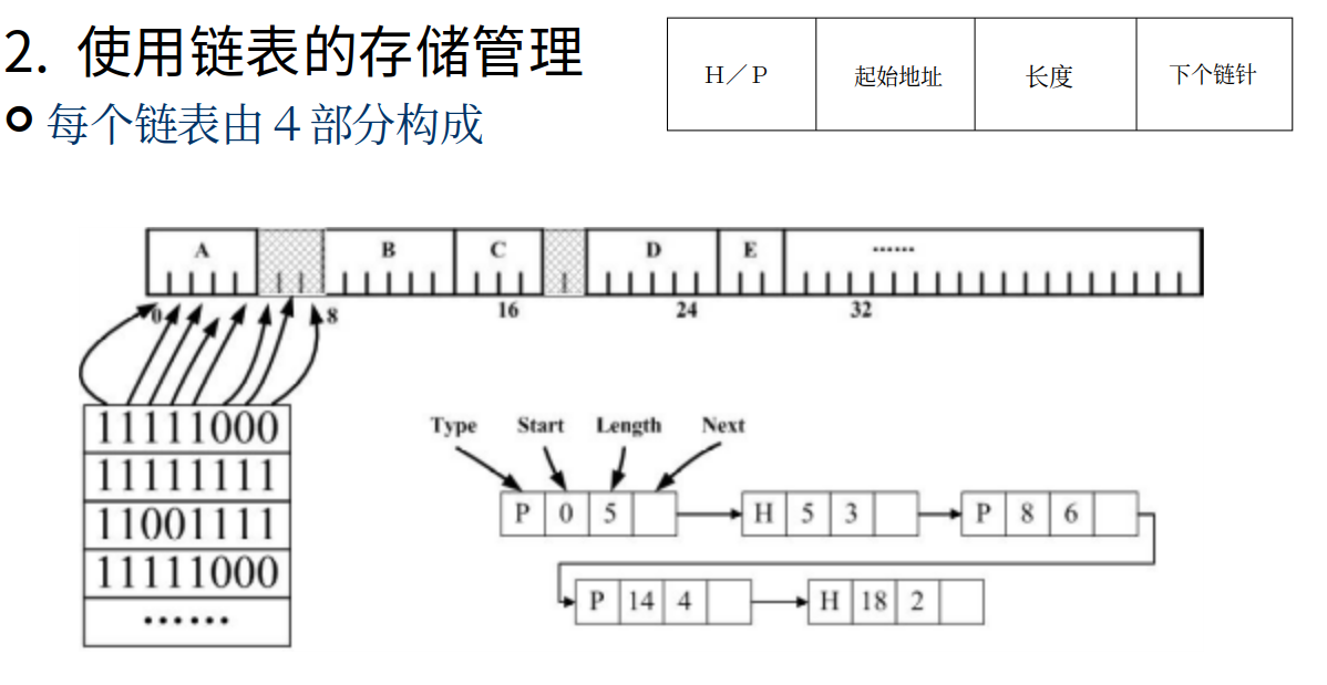 - 位图,块大小,找5个0,连续的5个空闲块找;