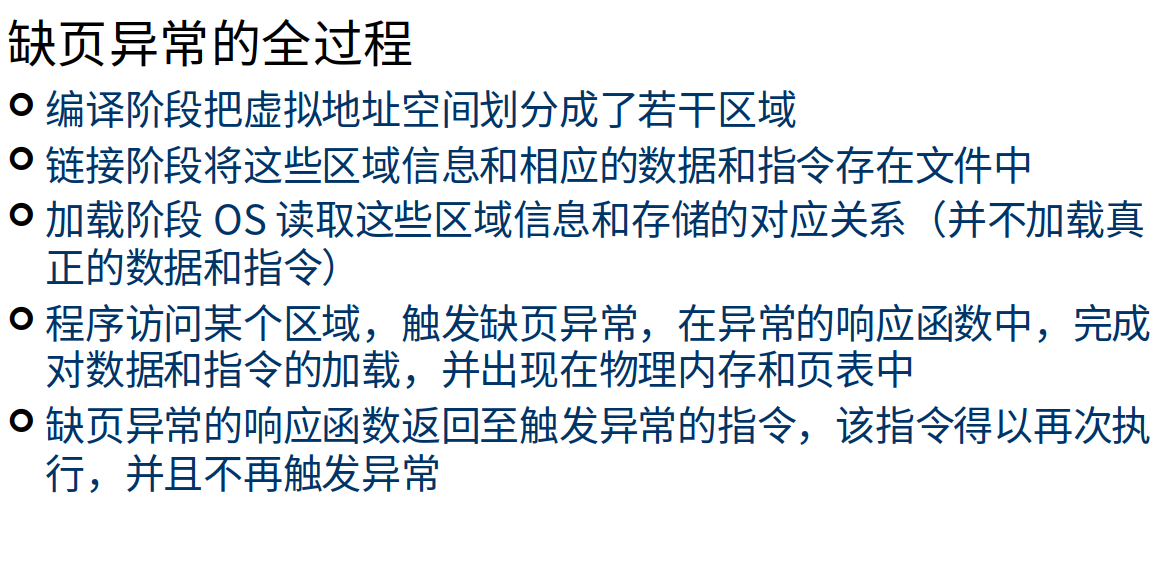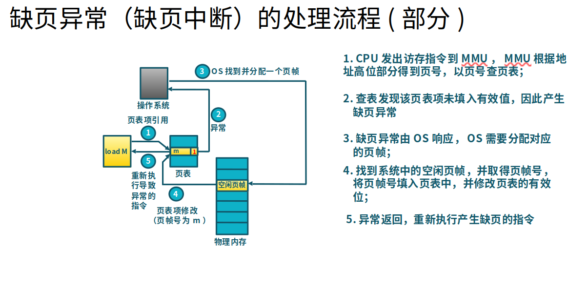 重新执行产生缺页的指令:函数返回地址→当前指令