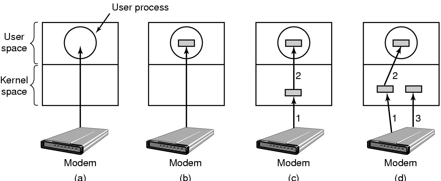 (c) 缓冲区在内核空间,然后被复制到用户空间
