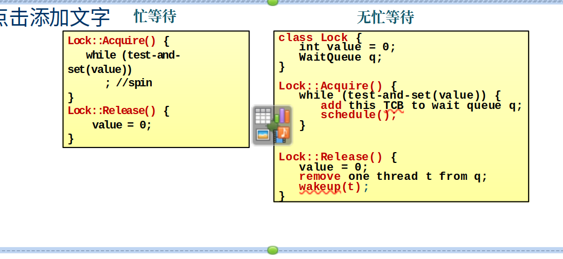 - 让权等带 不能进入临界区的进程,应释放CPU(如转换到阻塞状态)