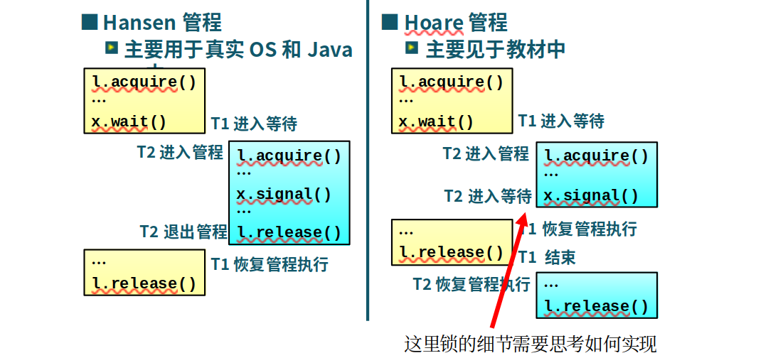 - hansen 管道与hoare管道:一般使用hansen管道,上下文切换更少