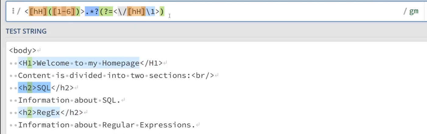 <[hH]([1-6])>.*?(?=<\/[hH]\1>)问一问后面的表达式是否等于它