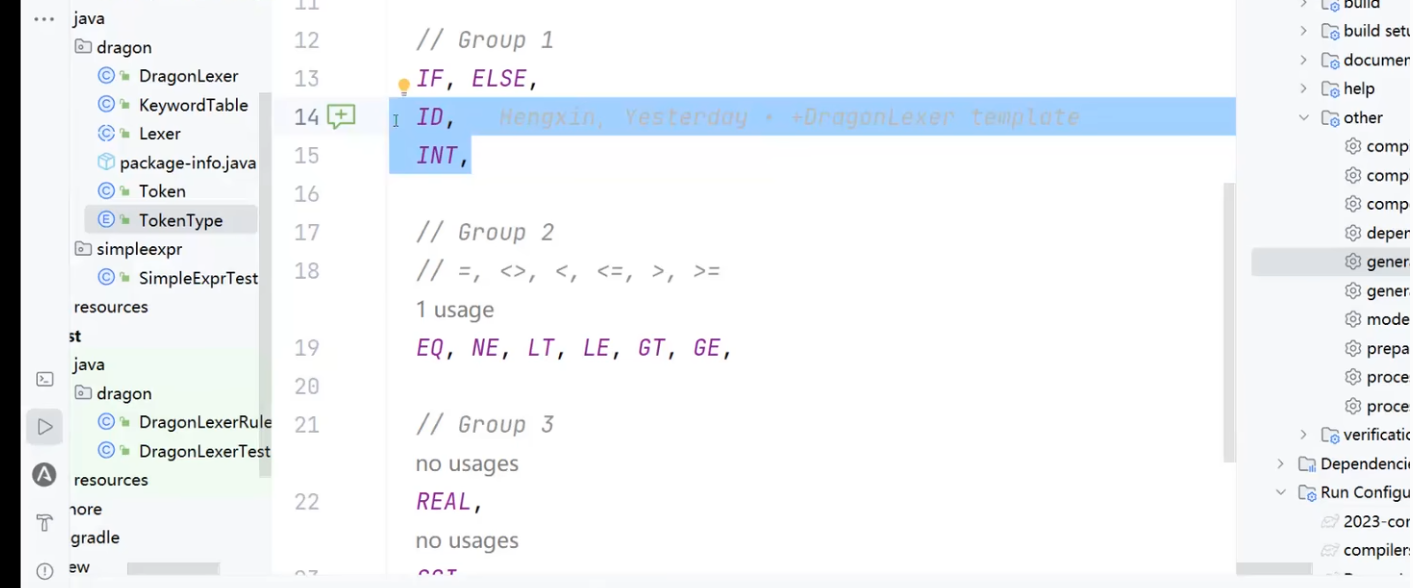 - 词法分析与语法分析文件分开写的原因:大家的词法可能是一样的,java 和cpp.表示变量 数字;语法不一样