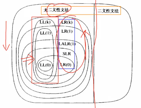 - LL(1):每次选择最左边的非终结符进行展开,leftmost;LL(1)从左向右读入词法单元,left-to-right。两个L的含义