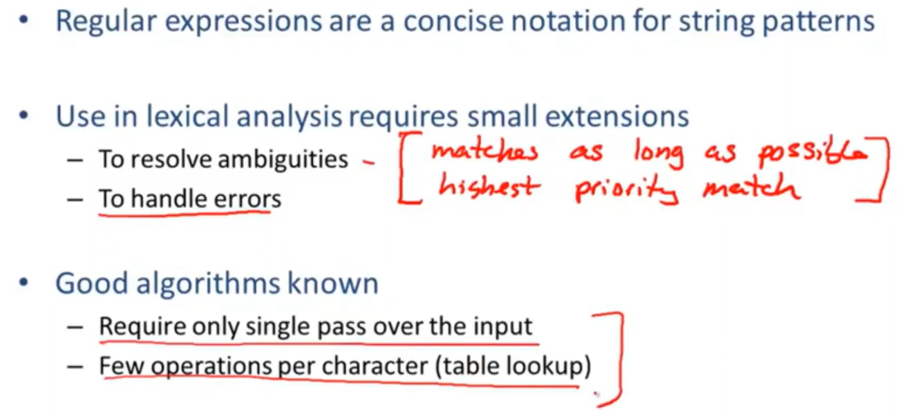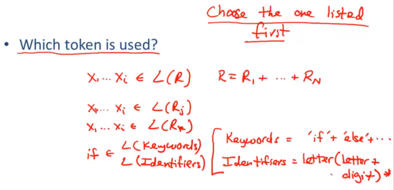 recognize substrings corresponding to tokens:substrings 被称为词素,构成词的要素。the lexemes