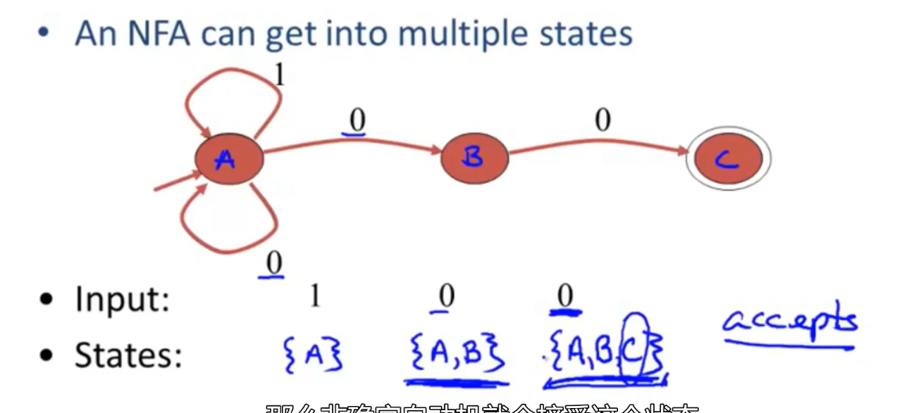 - states subsets of S(除去空集) 虽然大,但是是有限的>DFA的状态记录了NFA基于相同输入可能进入的可能状态集