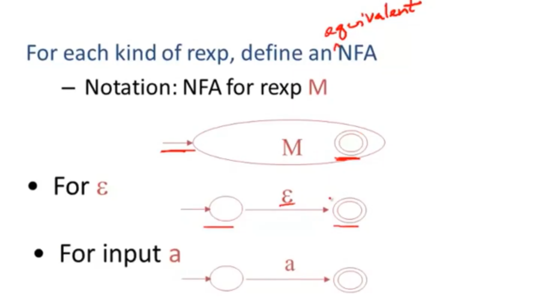 - for each kind of rexp,define an NFA
