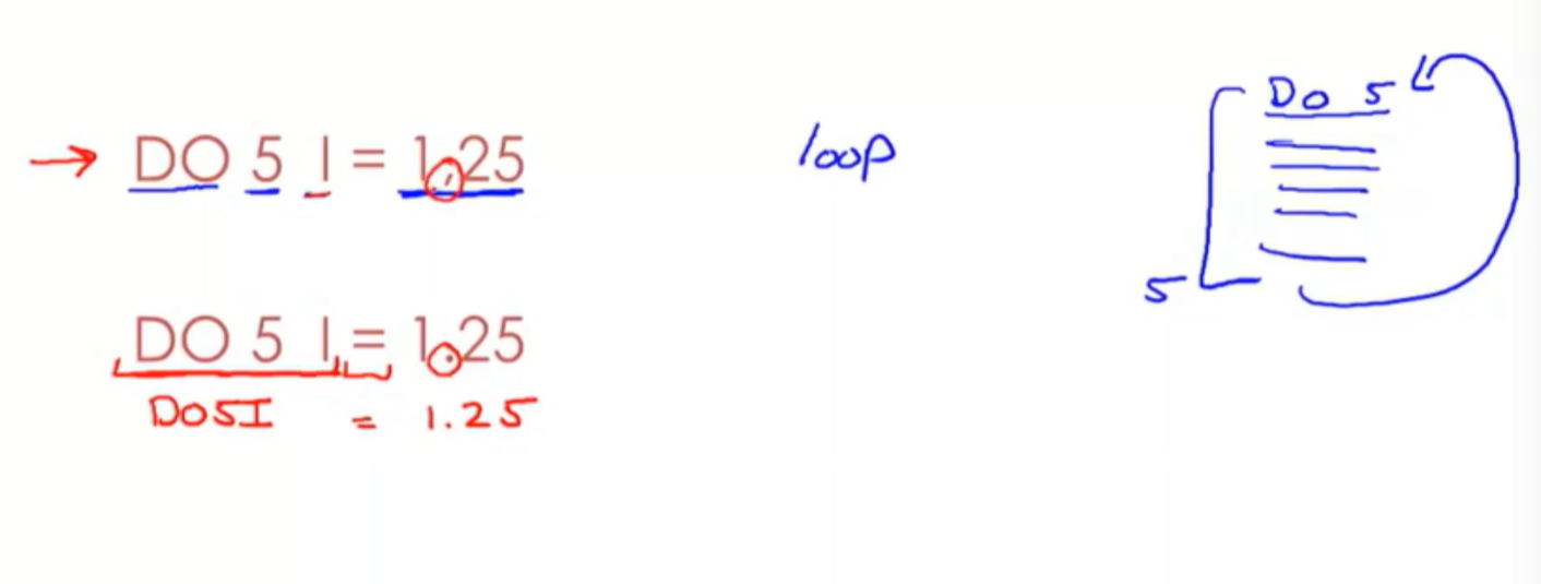 - fortran rule:white space insignificant.加上去掉空格没有影响。^为什么会有这一给规则?punch card machine 应用于。很容易 不小心添加空格