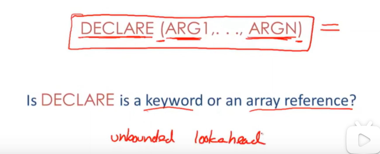 因为declare后面的参数数量不确定 所以lookahead的数量也是不确定的