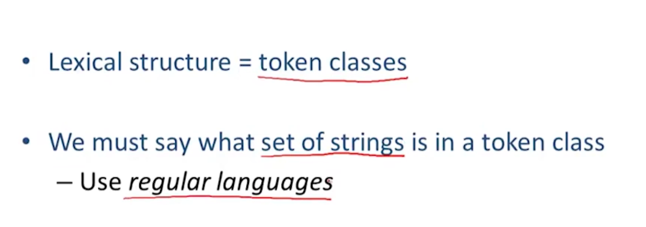 token classes correspond to sets of strings