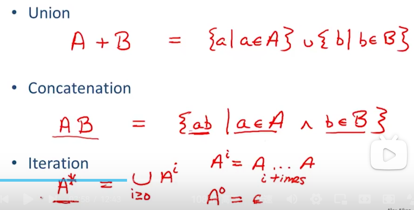 ={” ”} ‘c’={“c”} A+B=AUB AB+{ab|a属于A并且b属于B} A*=U expr=set