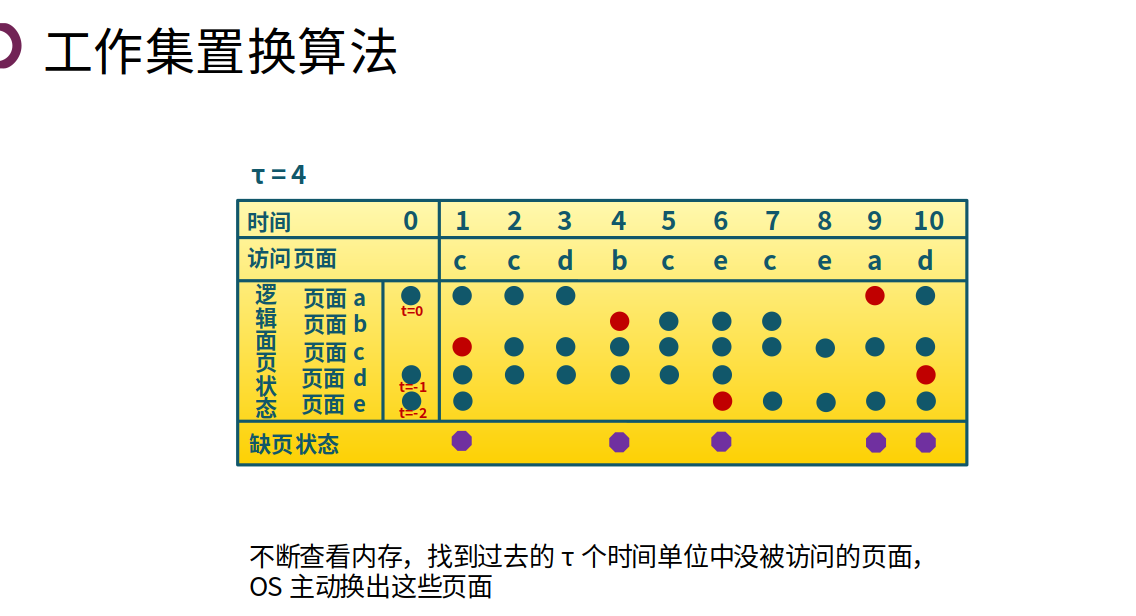 工作集:动态概念随着时间推移 发生变化;一段时间内 进程曾经访问的物理页。也许过去访问的代表未来的。要访问的页面的集合。