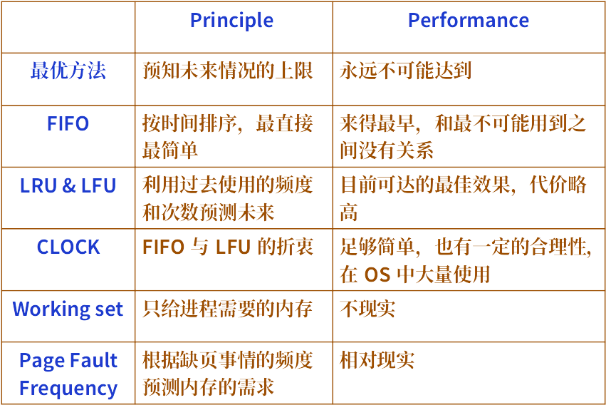 - 策略的问题:已经分配的page frame中回收谁?page fault
