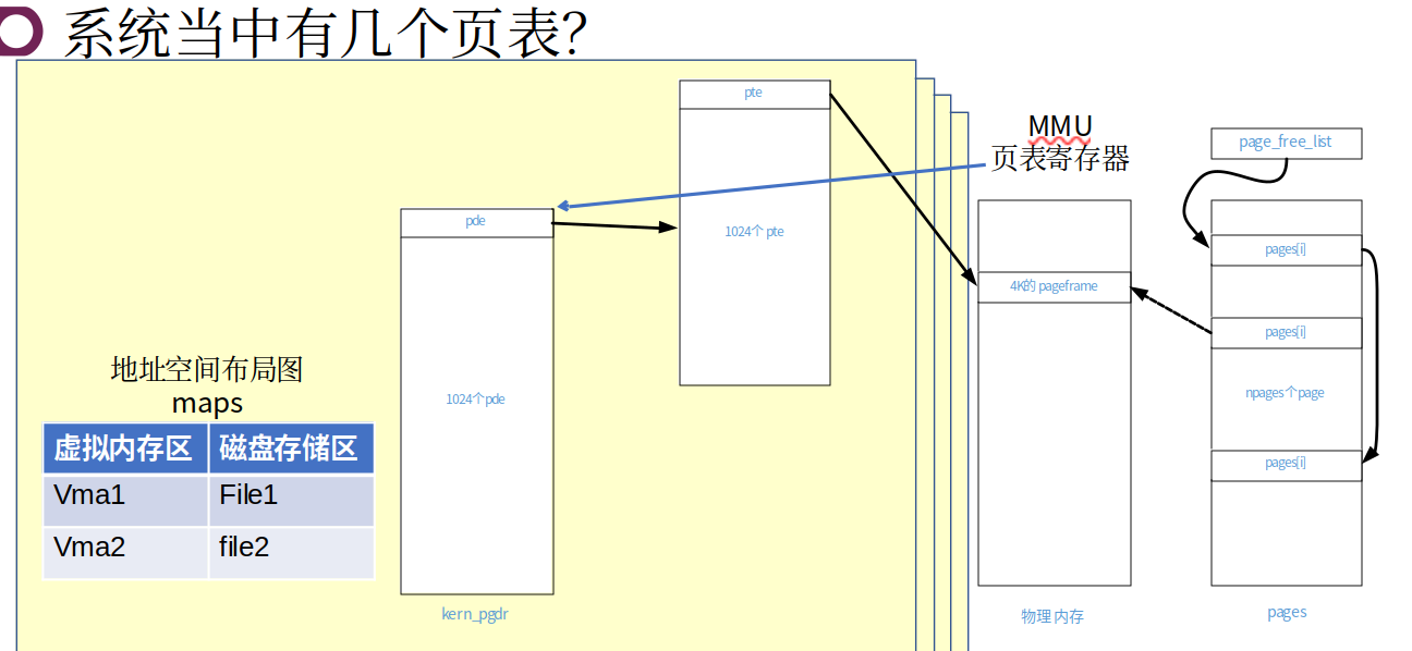 - access bit? 记录的物理地址?MMU?分级页表。有无被访问过。