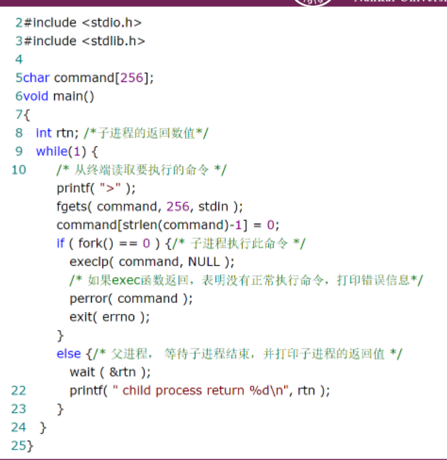 wait(&rtn)父进程,等待并回收。没有人wait 僵尸z进程,回收;- 孤儿进程:父进程先亡。