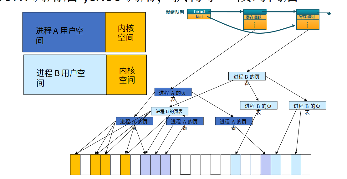 Fork负责创建一个新的进程 Fork由父进程调用,创建一个新的进程为子进程 新的进程与原进程共享所有的资源 页表复用,写时复制 新的进程为就绪态等待调度