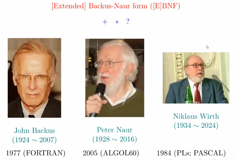 给定字符串 x,,由终结符构成,?,这个字符串在不在文法的语言里面。 即 检查x是否符合文法G 这是语法分析器的任务:为输入的词法单元流寻找推导、构建语法分析树、或者报错