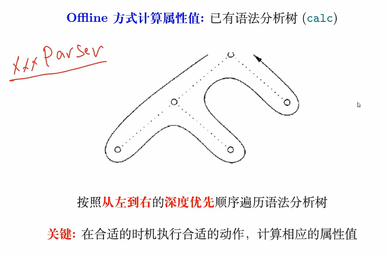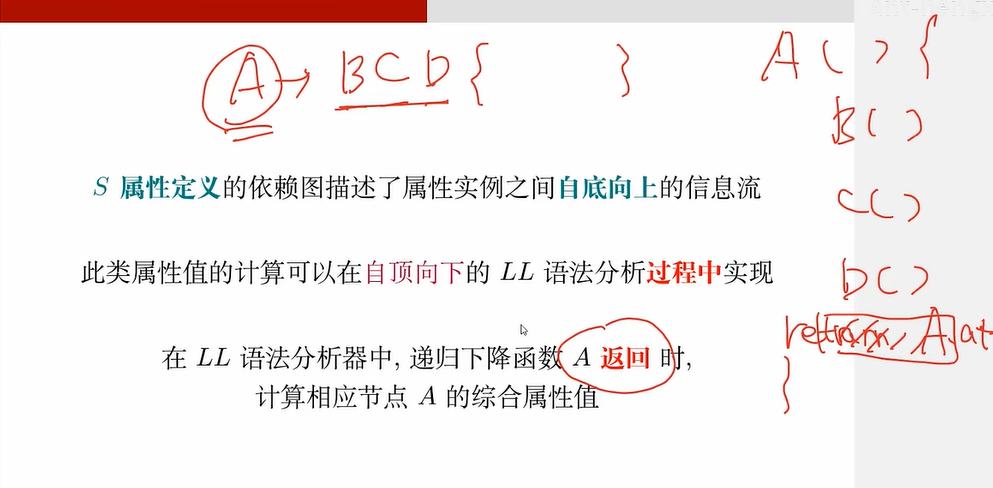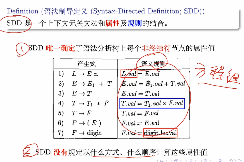 SDD没有规定以什么方式什么顺序计算这些属性值。右侧的语义规则仅仅描述了属性之间的依赖关系,理解成方程组。先算哪一个后算哪一个 没有确定。解耦。