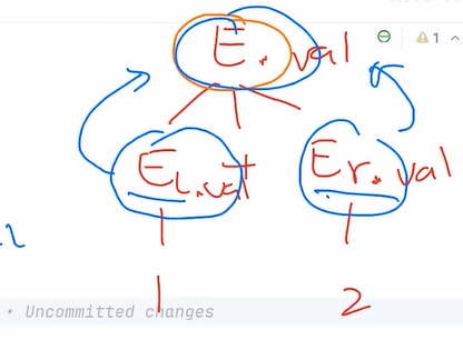 区分左右表达式 l r, 为表达式赋值。从递归角度 加返回值 intreturns [int val]