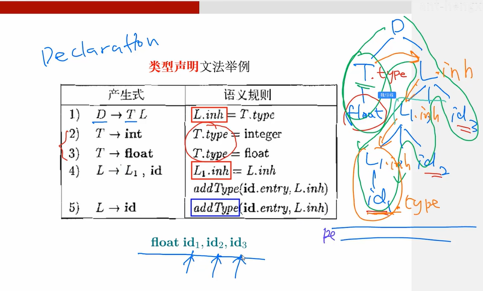 属性文法(attribute grammar):为上下文无关赋予语义。 类似面向对象,对象所有的属性。终结符和非终结符赋予属性。meaning semantics. 关心这个对象的什么属性赋予什么属性,语法树的节点。你关心什么什么就是语义。