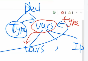 : vars[$typeStr] ',' ID {System.out.println($ID.text+":"+$typeStr);}