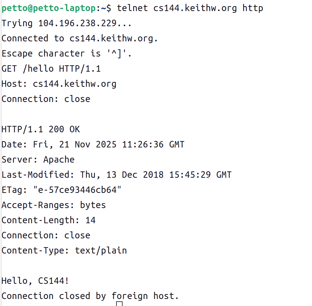 需要注意的是: - 在http中 每一行用\r\n来结束 - 不要忘记include connection:close 在你的客户端请求中。这会告诉服务器不要等着你的客户端去发送更多的请求在这个之后。并且 服务器会发送一个恢复然后立即end its outgoing bytestream (the one from the server’s socket to your socket)你会发现你的到来的字节流has ended 因为你的socket 会reach EOF 的那个你读完了所有从服务器发送的字节流。that’s how your client will know that the server has finished its reply. - 确认要read and print all the output from the server until the socket reaches eof—a single call to read is not enough
