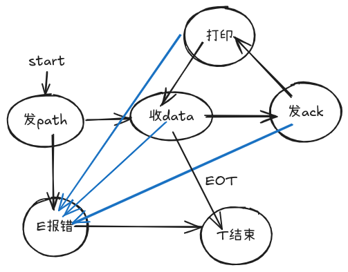 UDP 丢包的现象。 不是因为TTL(time to live)字段,经过的路由次数,default=64 而是因为 阻塞。路由器的等待队列。丢包的算法实现。 解决:流控,停等式流控,请求,ack.发包,等待,回确定收到的消息。闭环,带校验。丢包率 有无下降?无,反倒提高,两个包。 有限状态机模型