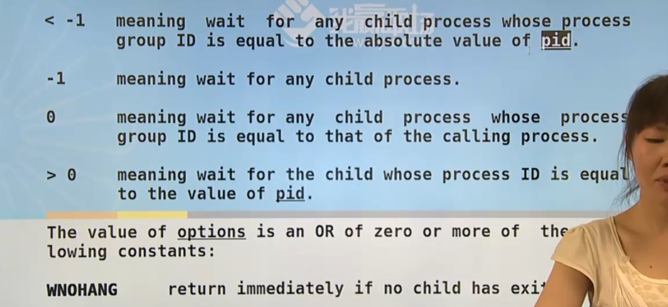 waitpid(pid_t pid,int *status,int options);waitpid好用的地方在于第三个参数,位图,按位或;WNOHANG,非阻塞。白发人送黑发人。。。创建出来的资源。