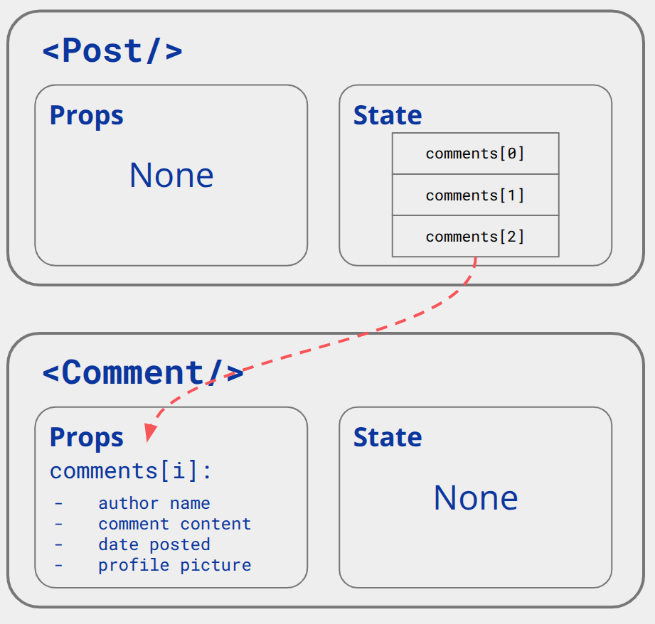 - state can be kept in parent components so that it can be passed into reusable child components as props